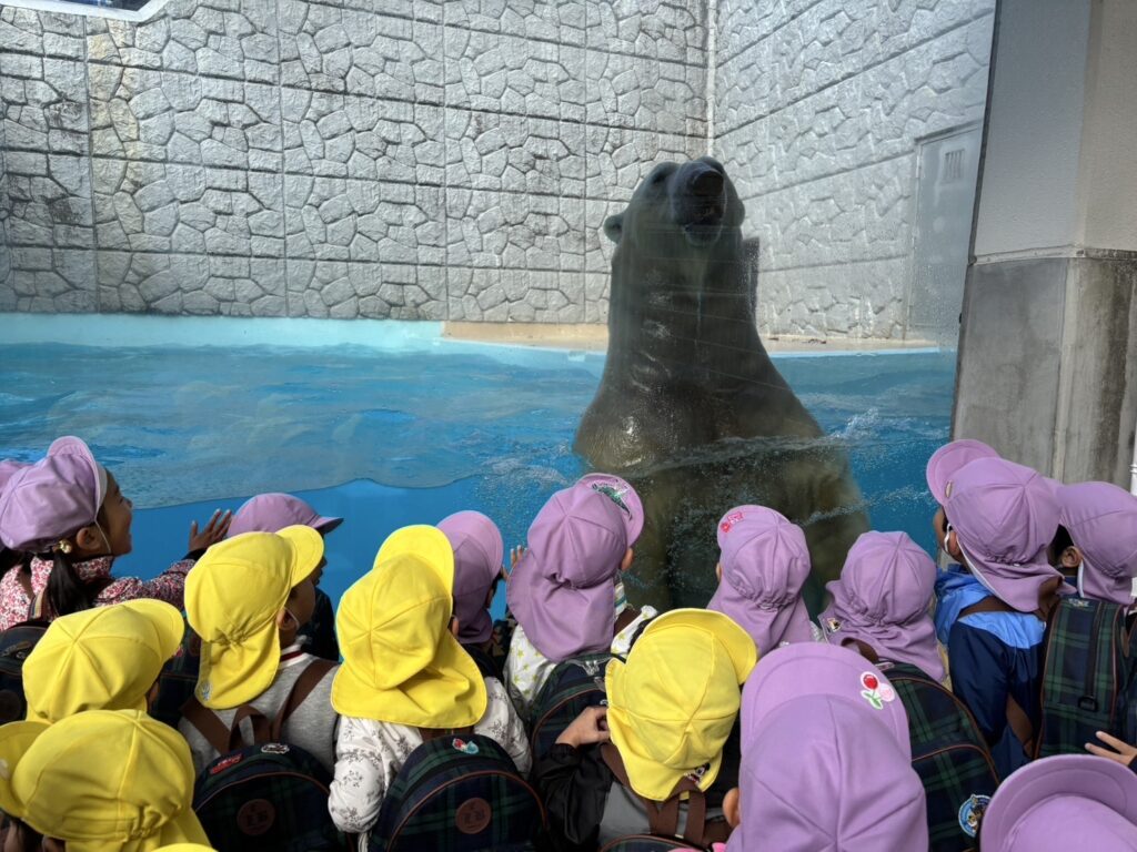 年少、年中は動物を見学。ライオンやシロクマを観て大はしゃぎでした!